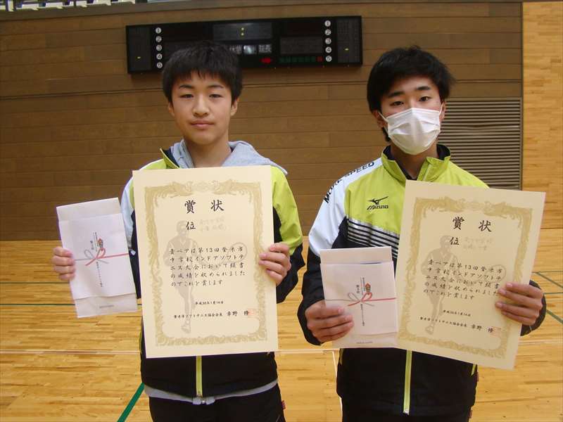 第13回登米市中学校インドアソフトテニス大会結果
