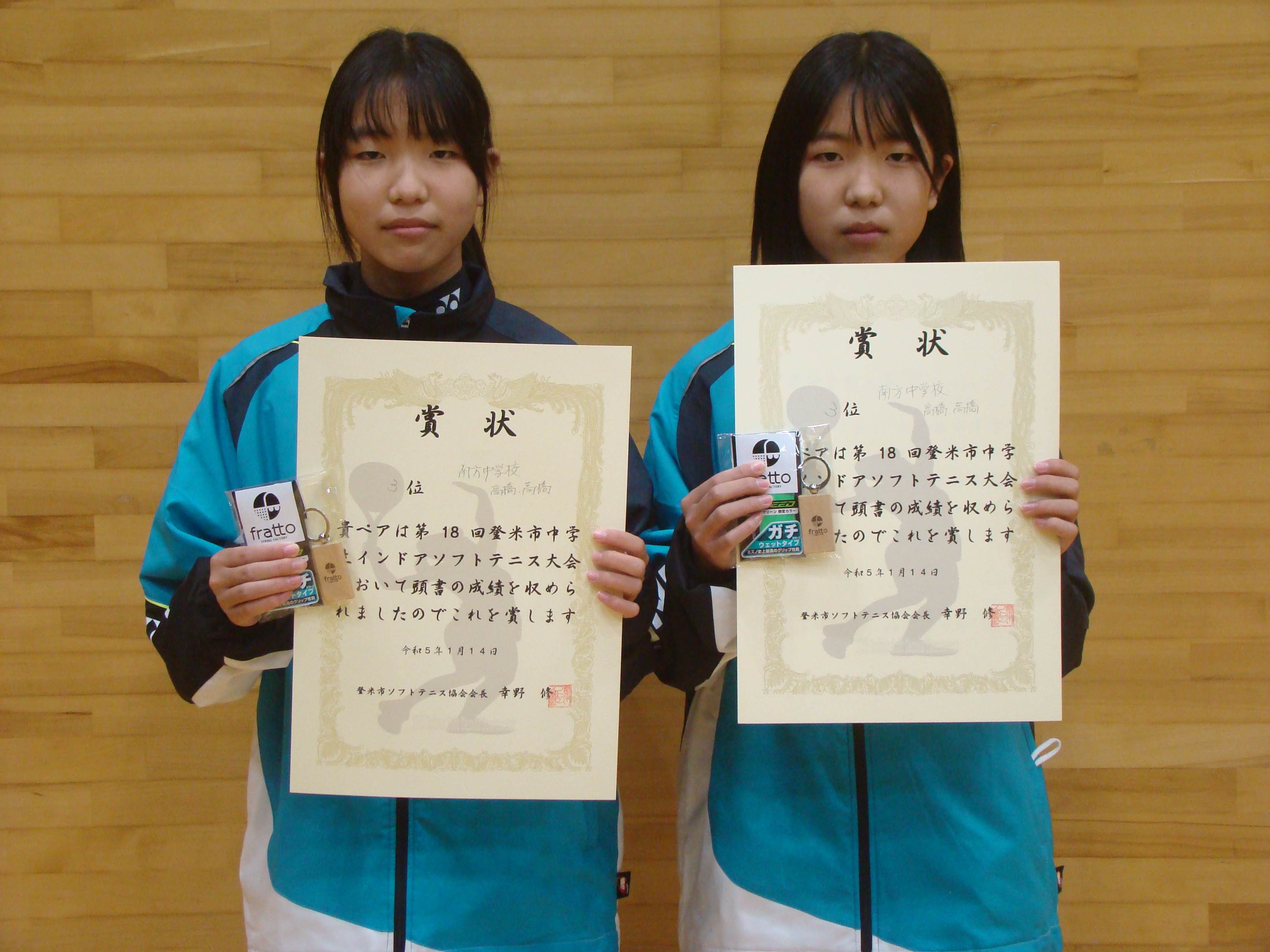 第18回登米市中学校インドアソフトテニス大会結果