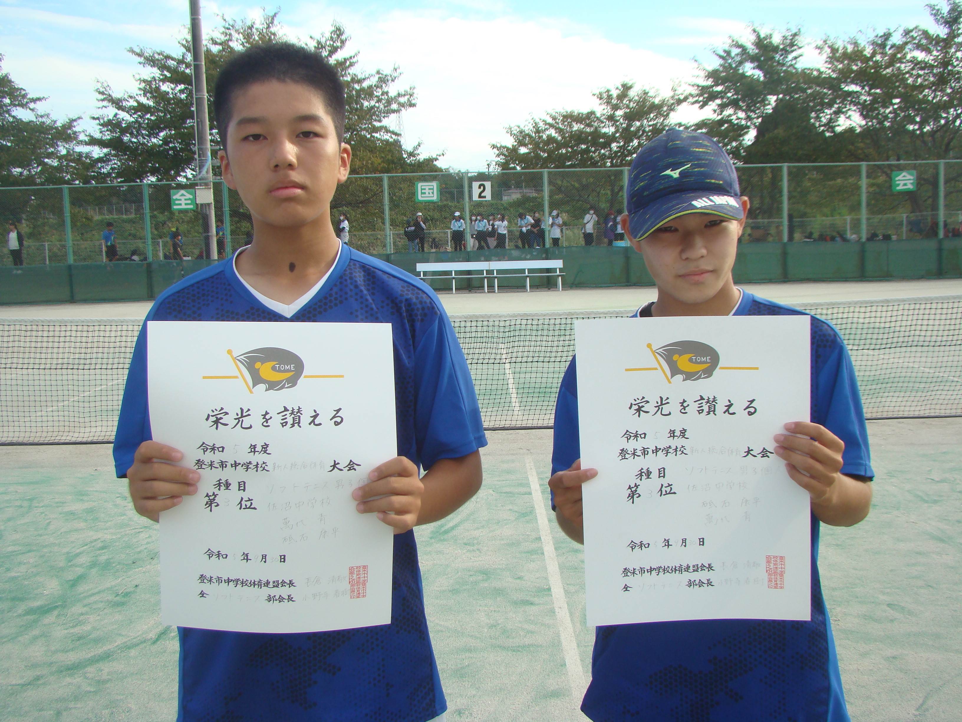 令和5年度登米市中学校新人総合体育大会ソフトテニス競技結果